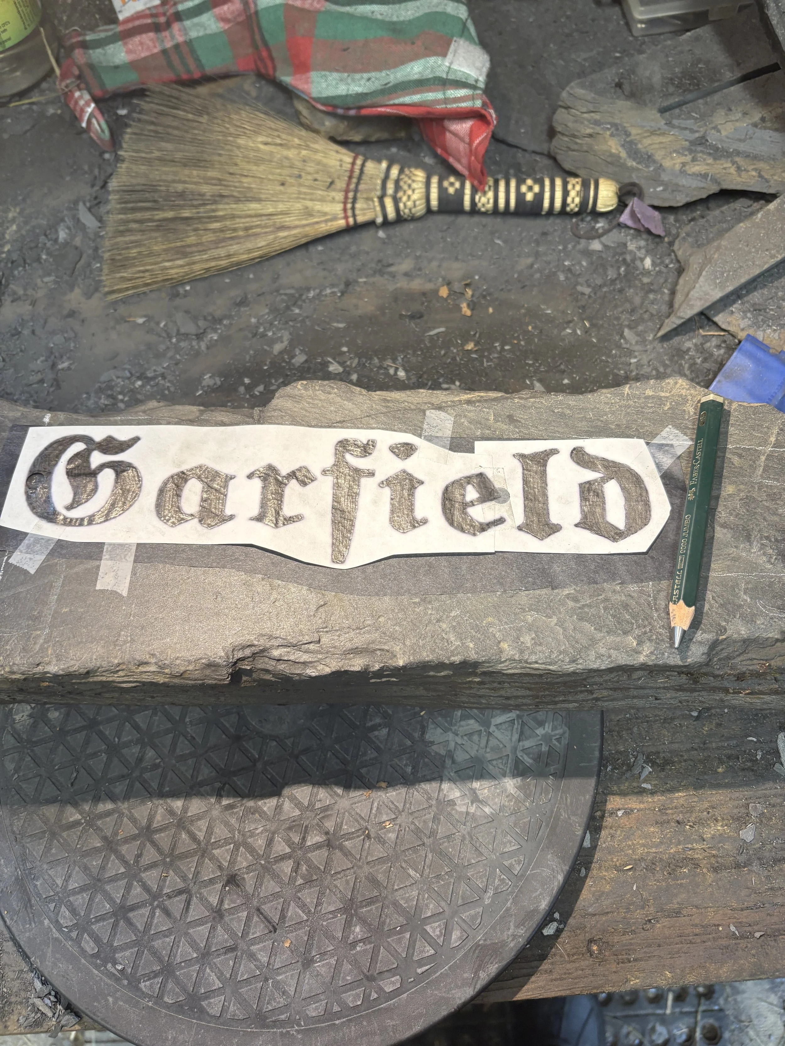 This project was done for a friend. Her cat, Garfield, had passed and wanted a stone in remembrance. They called him The King.